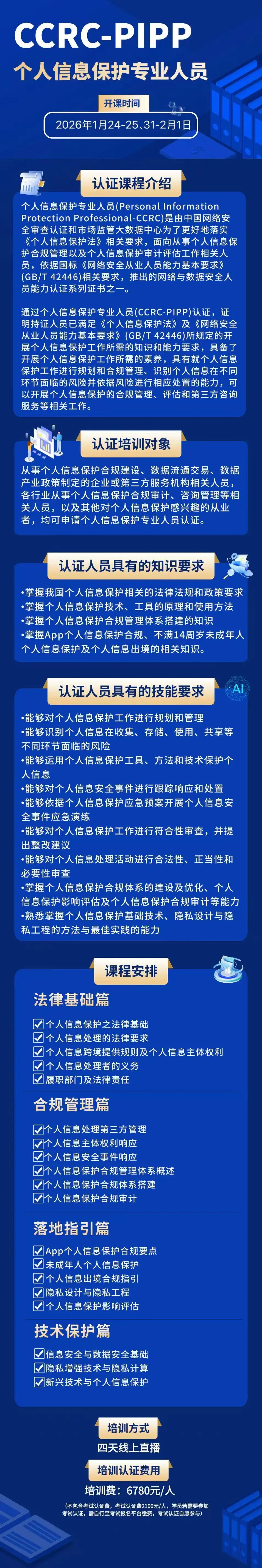 中国网络安全审查认证和市场监管大数据中心(CCRC)推出的PIPP认证,以国家标准为依托、以监管需求为导向,恰逢新规落地后的关键合规窗口期,助力从业者精准把握国家监管方向,夯实合规履职能力。